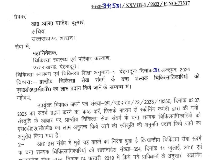 लंबे समय से लंबित मांग को मिली मंजूरी, एसडीएसीपी लाभ से दंत चिकित्साधिकारियों का बढ़ेगा मनोबल