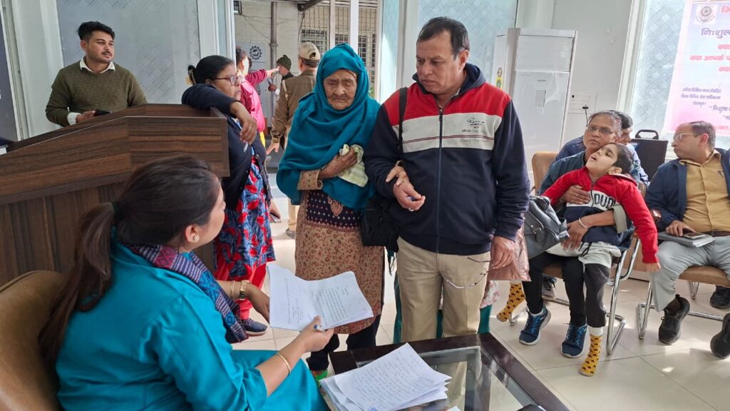 देहरादून: जिलाधिकारी सविन बंसल के निर्देशों पर सोमवार को क्लेक्ट्रेट परिसर में मुख्य विकास अधिकारी अभिनव शाह की अध्यक्षता में जनता दरबार लगाया गया। जनता दरबार में भूमि विवाद, सीमांकन, अतिक्रमण, मार-पीट, भरण पोषण, आपदा से क्षतिपूर्ति सहायता, आर्थिक सहायता, सामाजिक सुरक्षा आदि से जुड़ी 146 समस्या/शिकायतें दर्ज हुई। मुख्य विकास अधिकारी ने मौके पर ही कई मामलों का ऑन द स्पॉट निष्पादन किया साथ ही कुछ प्रकरणों को इससे जुड़े विभागों को अग्रसारित करते हुए विधि सम्मत त्वरित कार्रवाई करने के निर्देश दिए।