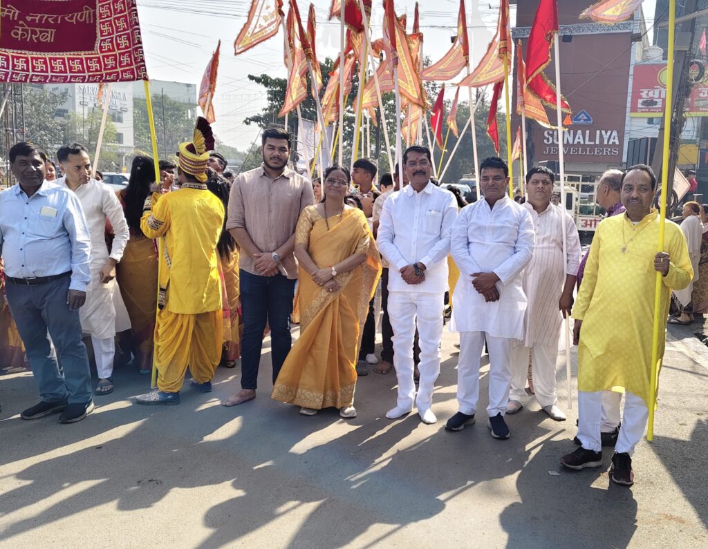 कोरबा। श्रद्धा, भक्ति और उत्साह से ओत-प्रोत वातावरण में 39वां श्री नारायणी “नमो नमो” दो दिवसीय भजनोत्सव एवं मंगलपाठ का शुभारंभ भव्य शोभायात्रा के साथ किया गया। इस पावन अवसर पर भारतीय जनता पार्टी के ऊर्जावान जिलाध्यक्ष श्री गोपाल मोदी व महापौर श्रीमती संजू देवी राजपूत विशेष रूप से शामिल हुए और श्रद्धालुओं के साथ माँ नारायणी की आराधना में सहभागिता निभाई।