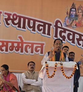 मुख्यमंत्री श्री साय ने अपने उद्बोधन में पूज्य बाला साहब देशपांडे एवं स्वामी अमरानंद जी के आशीर्वाद से वनवासी कल्याण आश्रम में क्षेत्रीय प्रमुख के दायित्व सौंपे जाने की जानकारी साझा की। उन्होंने बताया कि जशपुर जिले में अखिल भारतीय वनवासी कल्याण आश्रम का केंद्रीय कार्यालय स्थित है, जो जनजातीय समाज के उत्थान हेतु निरंतर कार्य कर रहा है। मुख्यमंत्री जी ने अपने संबोधन में धर्म और आस्था पर आक्षेप करने के कुत्सित प्रयासों पर तीखा प्रहार करते हुए जनजातीय समाज से सजग और जागरूक रहने का आह्वान किया। उन्होंने कहा कि जनजातीय समाज की आस्था सदियों से सुदृढ़ रही है और किसी भी प्रकार की साजिश से उसे विचलित नहीं किया जा सकता। उन्होंने स्पष्ट किया कि गौरा-गौरी की उपासना भगवान शिव-पार्वती (शिव-शक्ति) के रूप में प्राचीन काल से होती चली आ रही है तथा जनजातीय समाज प्रभु श्रीराम का सदैव उपासक रहा है। यह परंपरा हमारी संस्कृति, श्रद्धा और पहचान का अभिन्न अंग है। मुख्यमंत्री जी ने अंत में जनजातीय समाज से अपनी सांस्कृतिक विरासत, धर्म और परंपराओं की रक्षा करते हुए एकजुट होकर आगे बढ़ने का संदेश दिया। कार्यक्रम में बड़ी संख्या में जनप्रतिनिधि, सामाजिक कार्यकर्ता एवं जनजातीय समाज के लोग उपस्थित रहे। मुख्यमंत्री जी के आगमन से क्षेत्र में उत्साह और उमंग का वातावरण देखने को मिला।