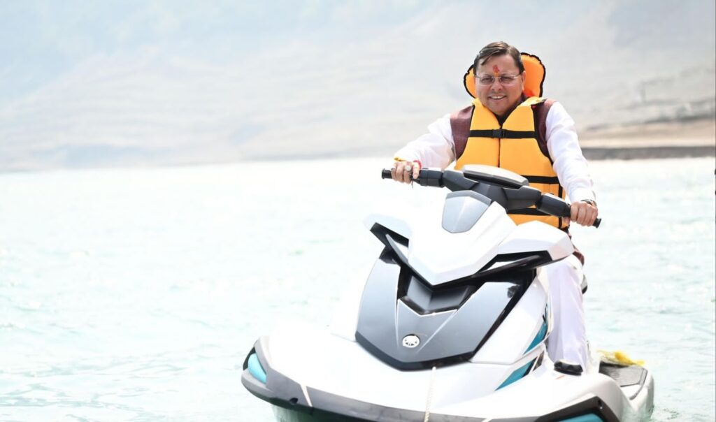देहरादून 06 मार्च। मुख्यमंत्री पुष्कर सिंह धामी शुक्रवार को टिहरी झील में आयोजित टिहरी लेक फेस्टिवल के दौरान अलग ही अंदाज में नजर आए। लाइफ जैकेट पहनकर जब वह झील के किनारे पहुंचे तो उनके सामने दो विकल्प थे—कैबिनेट मंत्री सुबोध उनियाल और अन्य जनप्रतिनिधियों के साथ बोटिंग करना या फिर गाइड के साथ जेट स्की का रोमांचक अनुभव लेना। मुख्यमंत्री ने जेट स्की का विकल्प चुना और झील की लहरों के बीच रोमांचक सफर पर निकल पड़े। बाद में उन्होंने बोटिंग का भी आनंद लिया।
