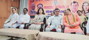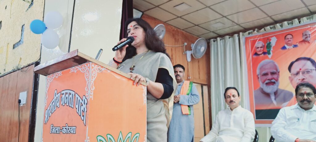 भारतीय जनता पार्टी राष्ट्रीय नेतृत्व के निर्देशानुसार देश के पूरे विधानसभा में विधानसभा स्तरीय मतदाता सम्मान समारोह किया जा रहा हैं। कोरबा विधानसभा स्तरीय मतदाता अभिनंदन समारोह को संबोधित करते हुए डा. सरोज पांडेय ने कहां की मैं बहुत जल्द इस क्षेत्र में विकास का काम शुरू करूंगी, चुनाव के बाद से मैं आप लोगो की सांसद हुं, जिन 5 लाख 26 हजार जनता ने जो हमको वोट दिया हैं मैं उसके लिए उनका धन्यवाद करती हुं, जनता को प्रणाम करती हुं, और उनको विश्वास दिलाती हुं जो उन्होने वोट दिया हैं, वो वोट उनका खाली नही जायेगा, मैं लगातार इस क्षेत्र में विकास का काम करूंगी, जिन चीजो को मैंने चुनाव के समय बोला था उन सभी चीजो को पूरा करुंगी।