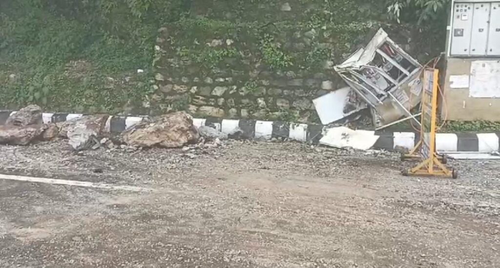 देहरादून। पहाडों की रानी मसूरी में लगातार हो रही बारिश से जनजीवन अस्त व्यस्त् हो गया है। मसूरी में भारी वर्षा के कारण मालरोड पर तिब्बती मार्केंट के सामने पहाड़ से एक बड़ा बोल्डर गिर गया, जो बिजली का फीडर पिलर को क्षतिग्रस्त हो गया वह मालरोड पर जा गिरा। गनीमत रही की सड़क किनारे कोई वाहन नहीं खड़ा था नहीं तो बड़ा नुकसान हो जाता। बिजली का फीडर पिलर क्षतिग्रस्त होने से मालरोड और आसपास के क्षेत्र के विद्युत सेवा प्रभावित हो गई जिसको करीब चार घंटे के बाद सुचारू किया गया।
