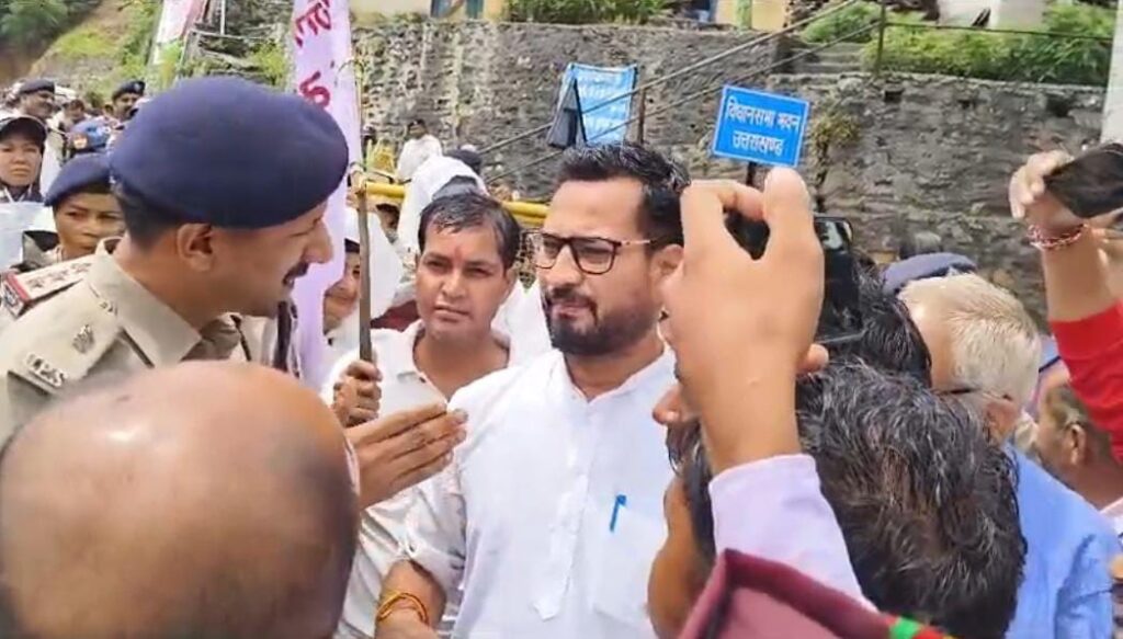चमोली। गैरसैण में मूल निवास व भू कानून लागू करने की मांग को लेकर विधानसभा कूच कर रहे 50 से अधिक प्रदर्शनकारियों को पुलिस ने कालीमाटी बैरियर पर रोक लिया।इस बीच प्रदर्शनकारियों ओर पुलिस के बीच जबरदस्त झड़प देखने को मिली।लगभग 1 घंटे तक चली जदोजहद ओर धक्कामुक्की के बीच प्रदर्शनकारी केन्द्रीय संयोजक मोहित डिमरी के नेतृत्व में आगे निकलने में कामयाब रहे।