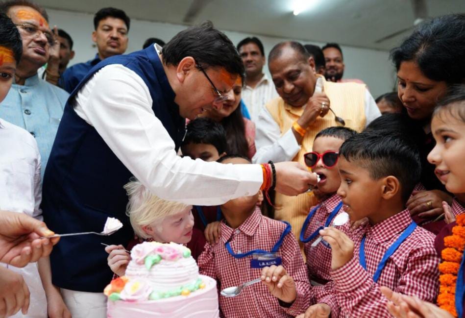 देहरादून। मुख्यमंत्री पुष्कर सिंह धामी अपने जन्मदिन के अवसर पर राजपुर रोड स्थित राष्ट्रीय दृष्टि दिव्यांगजन सशक्तिकरण संस्थान पहुंचे और दृष्टिबाधितार्थ बच्चों संग केक काटकर जन्मदिन मनाया। इस अवसर पर उन्होंने बच्चों को केक खिलाया एवं उनके उज्ज्वल भविष्य की कामना की। इस अवसर पर दृष्टिबाधितार्थ उच्चतर माध्यमिक आदर्श विद्यालय के बच्चों ने उपहार स्वरूप अपने द्वारा बनाया गया मॉडल मुख्यमंत्री को भेंट किया।