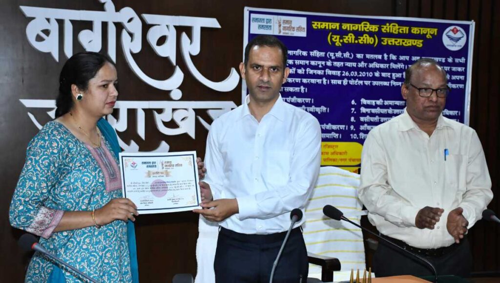 बागेश्वर: जिले में यूसीसी पंजीकरण अभियान में बेहतर प्रदर्शन करने वाले छह ग्राम पंचायत विकास अधिकारियों /सब रजिस्ट्रार को जिलाधिकारी आशीष भटगांई ने प्रशस्ति पत्र देकर सम्मानित किया है।